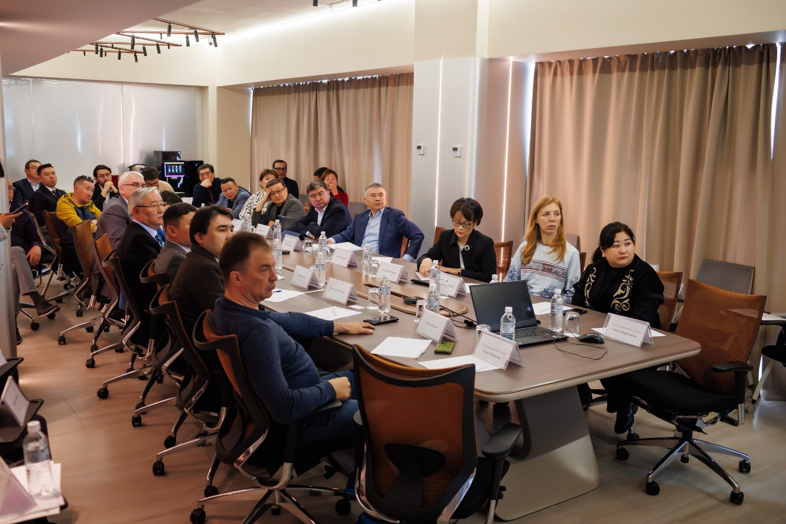 В собрании принял участие Елнұр Мұхамеджанұлы Ахметов - Генеральный директор ГНПП «Иле-Алатау», а также первые руководители важнейших для проекта научных институтов Комитета науки Министерства науки и высшего образования Республики Казахстан, такие как Ақан Оңғарұлы - директор РГП на ПХВ «Институт археологии им. А.Х. Маргулана», Ященко Роман Васильевич - директор РГП на ПХВ «Институт зоологии», Ахтаева Нурсулу Зияхановна - заведующая кафедрой ботаники и агроэкологии КазНУ им. Аль Фараби, факультет биологии и биотехнологии, Рамазанова Раушан Хамзаевна - директор ТОО «Казахский научно-исследовательский институт почвоведения и агрохимии им. У.У. Успанова, Балыкбаев Такир Оспанович - директор Центрально-Азиатский Региональный Гляциологический Центр категории 2 под эгидой ЮНЕСКО. Отдельно Мухтар Тайжан отметил активное участие во встрече Олимпийской чемпионки по биатлону Елены Хрусталевой и прославленного покорителя Эвереста (и не только) Максута Жумаева.