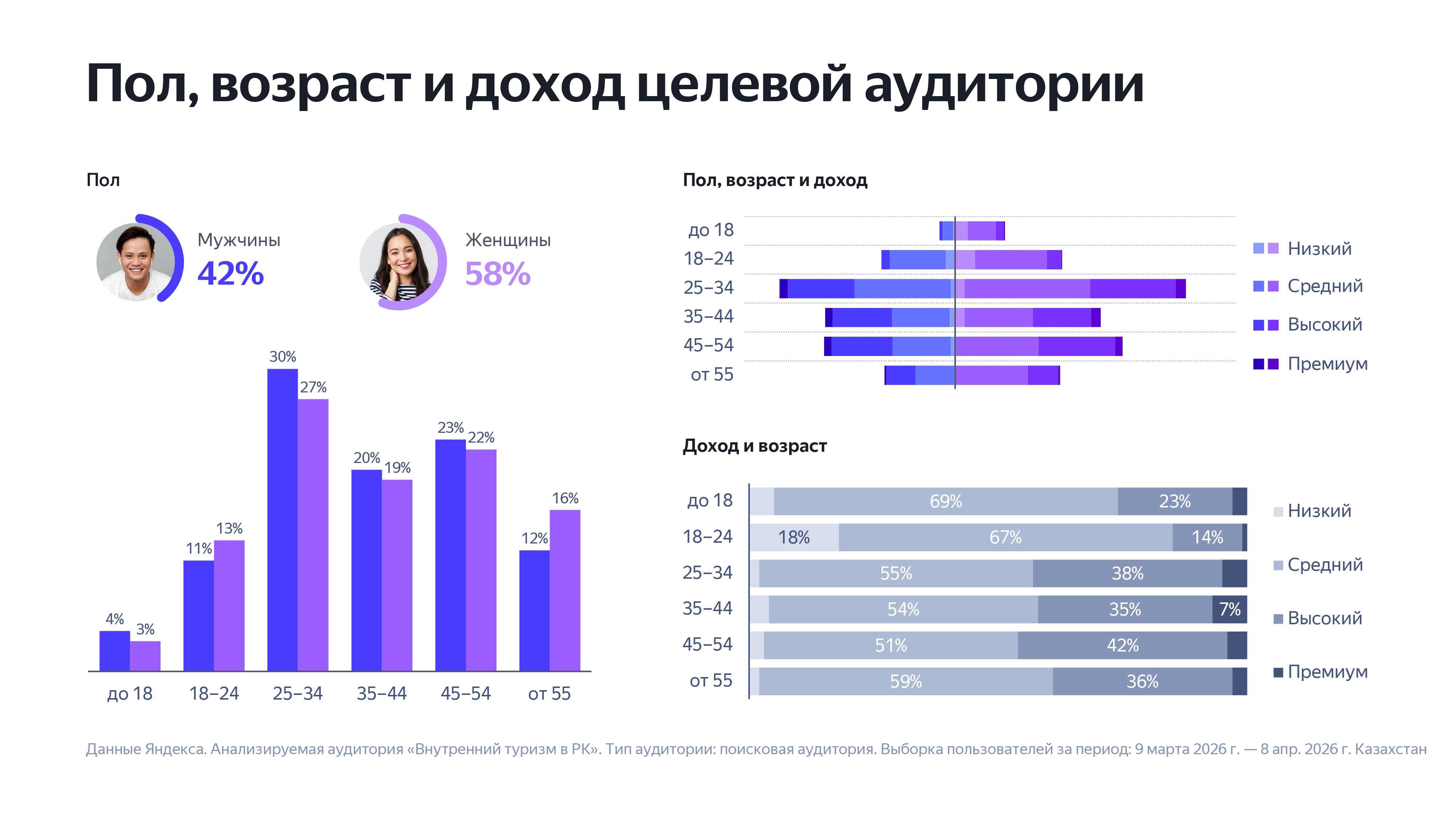 В 2025 году количество иностранных туристов в Казахстане превысило 15,7 млн, что на 71% больше год к году. Объем внутреннего туризма превысил 10,1 млн размещенных туристов, прибавив около миллиона человек за год. Анализ запросов пользователей в Яндекс Поиске показывает, что этот рынок неоднороден: по сценариям выбора и модели спроса его можно разделить на четыре типа туристов.