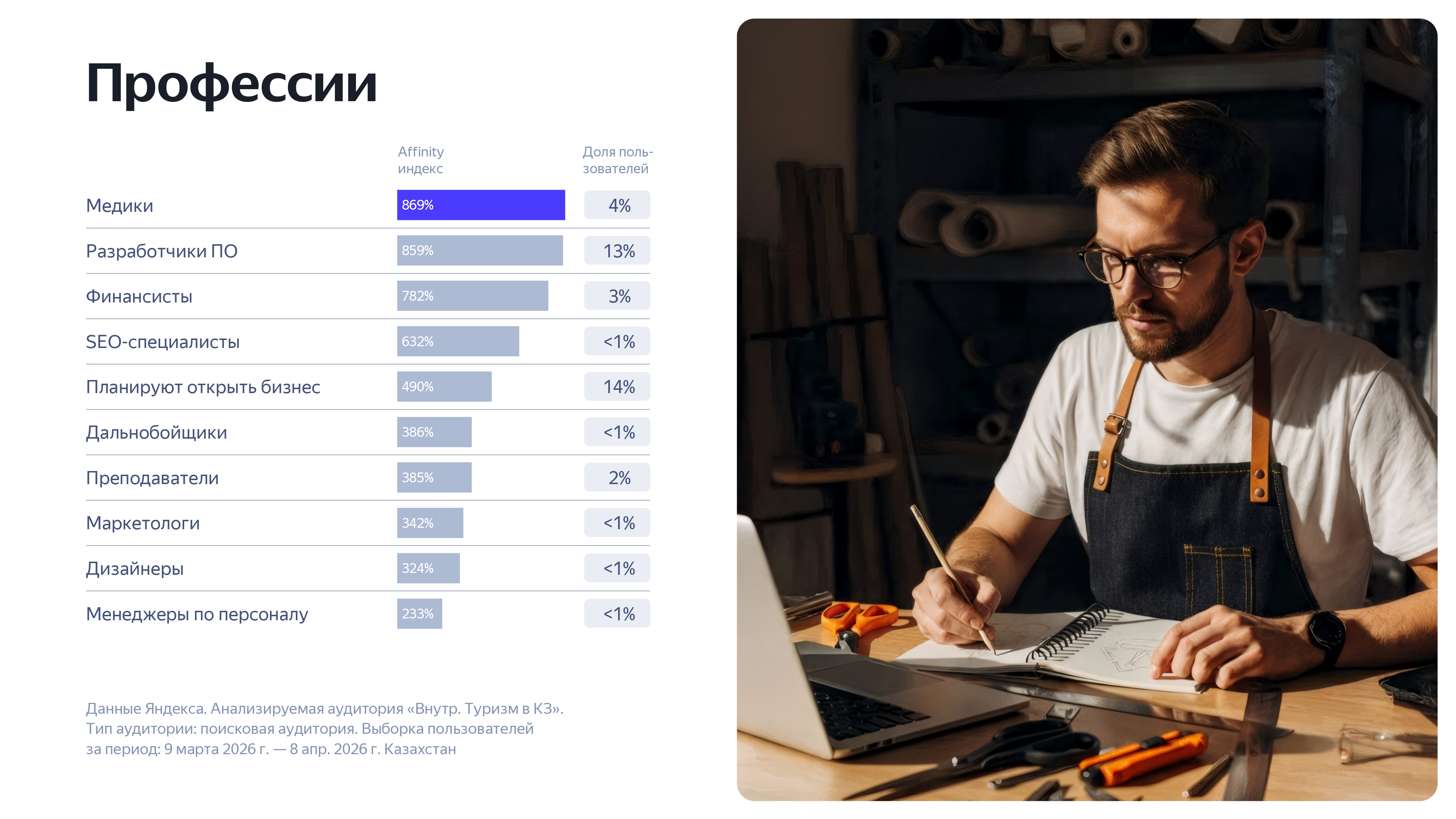 Пользователи начинают планировать поездки за несколько месяцев до отпуска, поэтому апрель становится стратегически важным периодом для поиска клиентов. В день казахстанцы задают более 10 млн запросов в Яндекс Поиске. Узнать, что уже сейчас чаще всего ищут туристы можно с помощью сервиса Яндекс Вордстат, он показывает статистику поисковых запросов пользователей и помогает видеть реальный спрос до запуска рекламы. Для турбизнеса это особенно важно, поскольку позволяет не строить продвижение на предположениях, а опираться на данные.