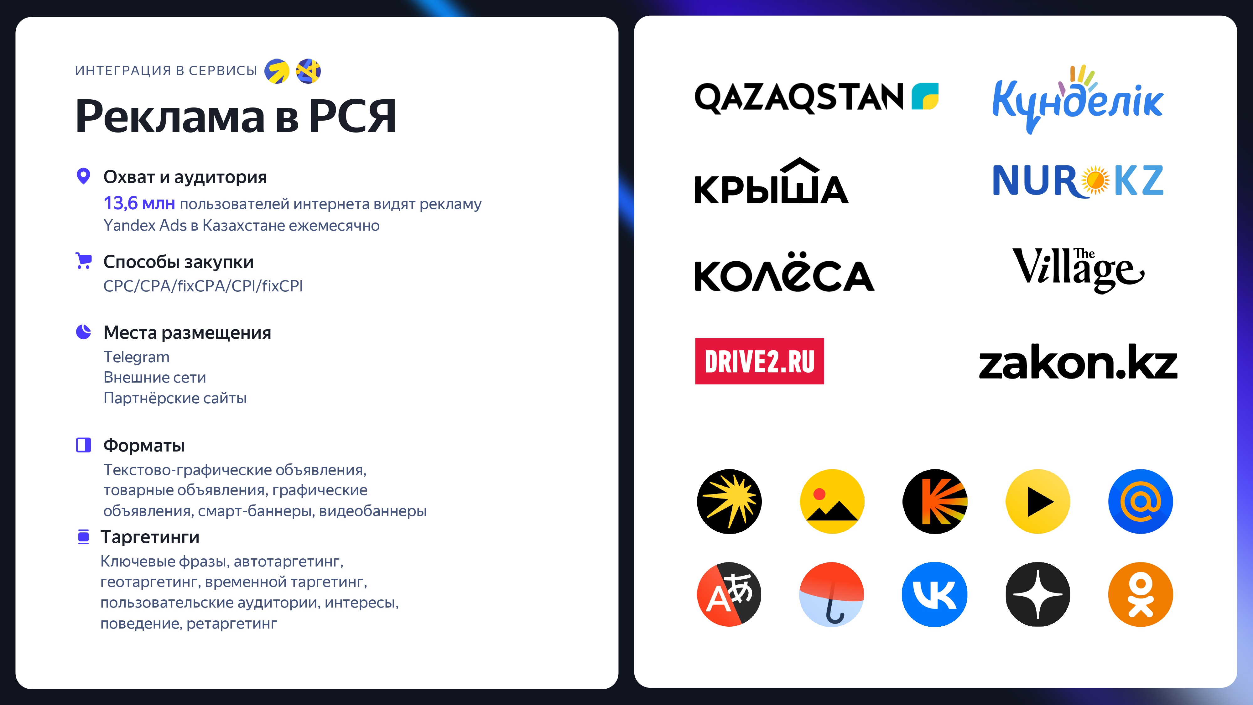 Далее в Yandex Ads можно запустить рекламу под те ключевые запросы, что вы нашли под свою нишу. Яндекс Поиск дает возможность работать именно со спросом, а не просто показывать рекламу широкой аудитории. Когда пользователь вводит запрос о турах в Турцию, ищет семейный отдых на Алаколе или сравнивает варианты поездки во Вьетнам, это уже сигнал намерения. В этот момент реклама в поиске становится точкой входа в продажу. Отдельным преимуществом является, что ваша реклама будет показываться не только в самом Поиске, но и в товарной галерее, а также на ресурсах Рекламной сети Яндекса. Она объединяет более 45 000 площадок на казахском и русском языках. Турист может увидеть предложение не только в прямой выдаче, но и в сопутствующих сценариях поиска, что увеличивает вероятность повторного касания.