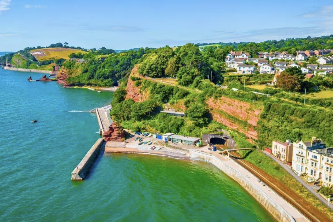Особенно стоит быть наготове с камерой у деревни Старкросс — именно отсюда начинается один из самых впечатляющих участков маршрута: морская стена в Долиш. Здесь волны во время прилива могут эффектно накрывать железнодорожные пути, создавая драматические кадры. Пейзаж дополняют знаменитые красные песчаниковые скалы яркого ржаво-оранжевого оттенка.