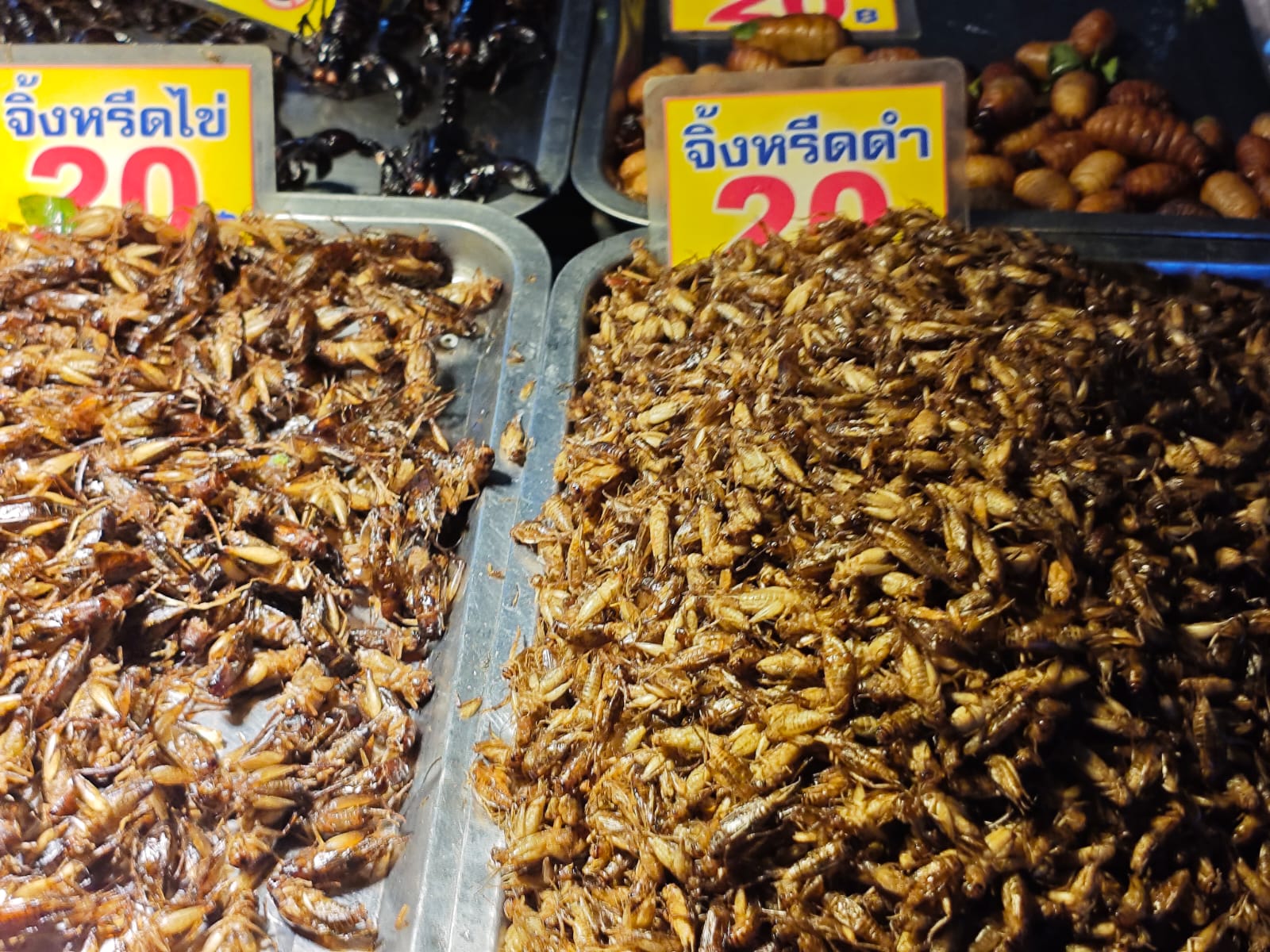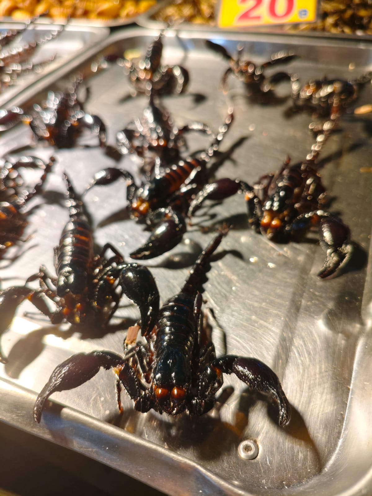 В апреле нас занесло на Пхукет. Вот где смелость кулинаров проявляется прямо на улицах! Я не видел, как местные жители едят жареных насекомых, но встречал прилавки с жареными скорпионами, тараканами, червями и другими белковыми «деликатесами». Ей-Богу, даже не замечал, как кто-то их покупает, однако оставляют они неизгладимое впечатление, ибо продаются рядом со свежими фруктами, прохладительными напитками и прочим.
