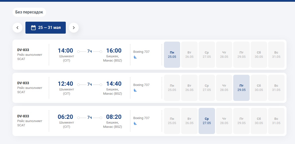 Рейсы будут выполняться с частотой два раза в неделю. Время в пути составит около семи часов, без пересадок. Пунктом прибытия станет Международный аэропорт Манас — главный авиационный хаб Кыргызстана, обеспечивающий удобные стыковки и развитую инфраструктуру для пассажиров.