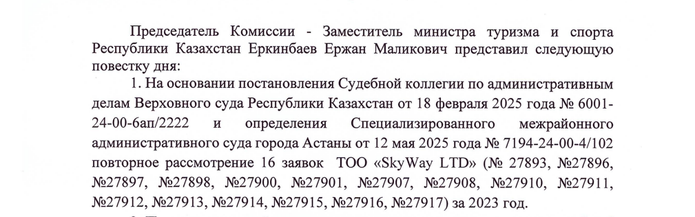 С начала 2025 года из 24 заседаний Комиссии - 13 переносились (Протокола №1, 2, 3, 4, 7, 8, 9, 12, 15, 20, 22, 23). Чаще всего причиной переноса становилось отсутствие кворума — на заседаниях присутствовало меньше 7 участников, хотя приглашения получали все 13 членов комиссии. Такая практика создаёт впечатление искусственного затягивания выплат, словно решения намеренно откладываются до момента истечения сроков принятия заявок. Туроператор «KAZIN INTERNATIONAL», который работает с турпотоками из Индии и арабских стран, подтвердил эту проблему на собственном опыте.